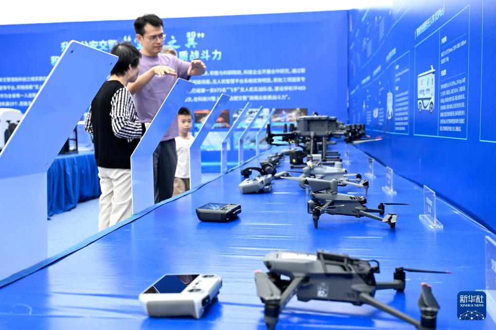 9月21日,观众在“全空间无人体系成果展”上参观合肥交警无人机交通管理装备体系。新华社记者 黄博涵 摄