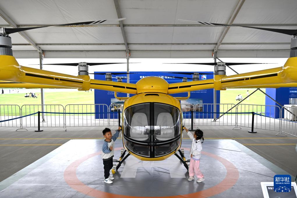 9月21日,观众在“全空间无人体系成果展”上参观一款无人驾驶电动垂直起降航空器。新华社记者 黄博涵 摄