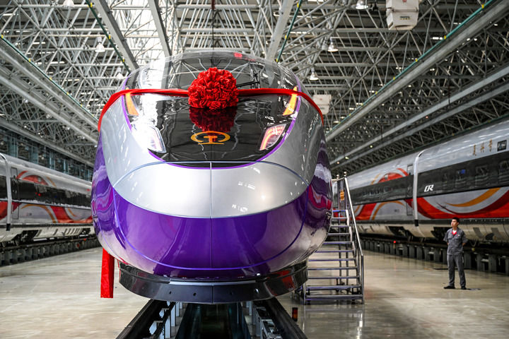 鹰隼造型配以月辉银的色彩,车头前端顶着金色的路徽,运行速度400km/h、试验速度大于450km/h的CR450BF动车组样车在中车长客下线后,马不停蹄进行正线试验。“没有可以借鉴的成熟经验,完全凭借自主创新在‘无人区’探索。”中车长客副总工程师朱彦说。