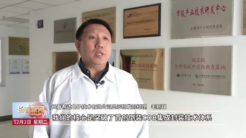 长春希达电子技术有限公司显示研发部经理 毛新越:我们的核心是突破了首创倒装COB集成封装技术体系,这正是科技与产业深度融合的产物。不仅突破传统工艺的物理尺寸极限,更是将产业链进行了大幅缩减。以自主技术带动产业链升级,只有这样,才能真正实现以科技自立强实体根基。