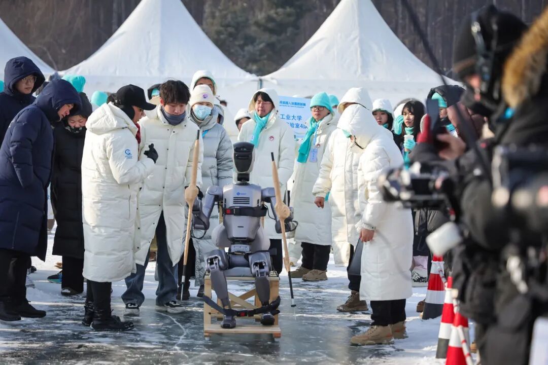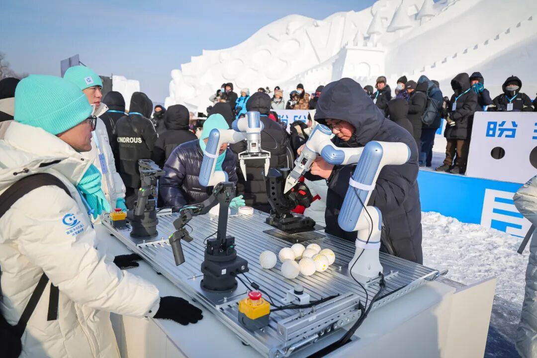 比赛现场,来自吉林大学、东北师范大学等6所高校携手6家企业组成的25支校企联合战队早已严阵以待。他们带来的双足人型机器人、四足机器狗、协作机械臂等智能设备,在冰天雪地中展开了一场别开生面的“抗压测验”。