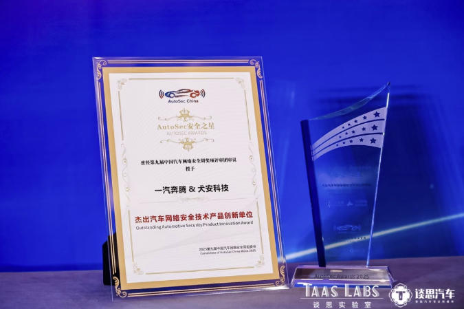 近日,一汽奔腾凭借在汽车网络安全领域的卓越创新,蝉联AutoSec 年度“杰出汽车网络安全技术产品创新单位”荣誉称号。