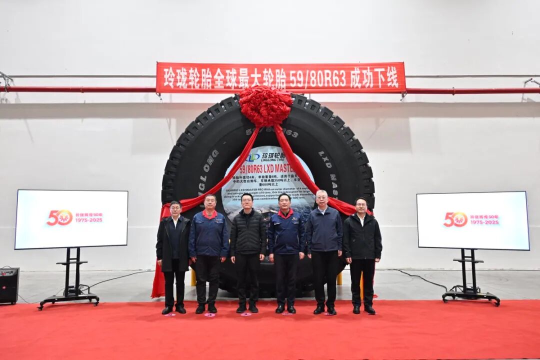 日前,玲珑轮胎长春工厂迎来重大突破——首条自主研制的59/80R63“玲珑”品牌巨型全钢工程子午线轮胎成功下线。