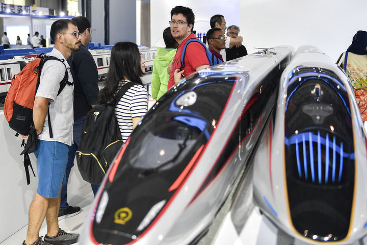 人们在第十四届中国—东北亚博览会现场参观展出的轨道客车模型(8月24日摄)。新华社记者 许畅 摄