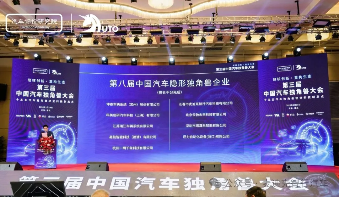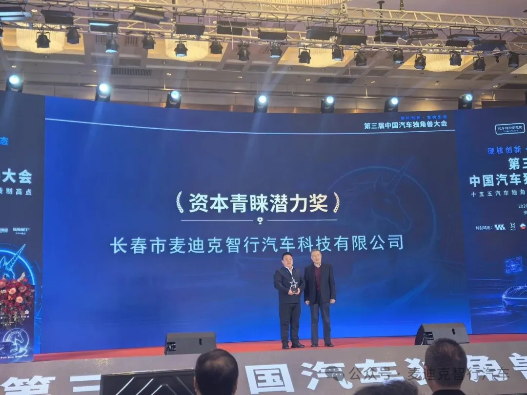 2026年1月18日,“硬核创新・重构生态:十五五汽车独角兽攻坚科技制高点”2025年度中国汽车独角兽大会在安徽淮北启幕。这场聚焦汽车产业新质生产力的盛会,见证了创新标杆企业的崛起。长春市麦迪克智行汽车科技有限公司凭借硬核实力与成长潜力,斩获“中国汽车隐形独角兽”称号及“资本青睐潜力奖”,双奖加身彰显行业与资本双重认可。