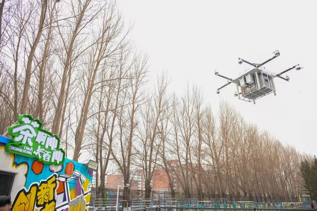 省内首条高校低空物流配送航线开通,东北师范大学(净月校区)内无人机送外卖更快捷。